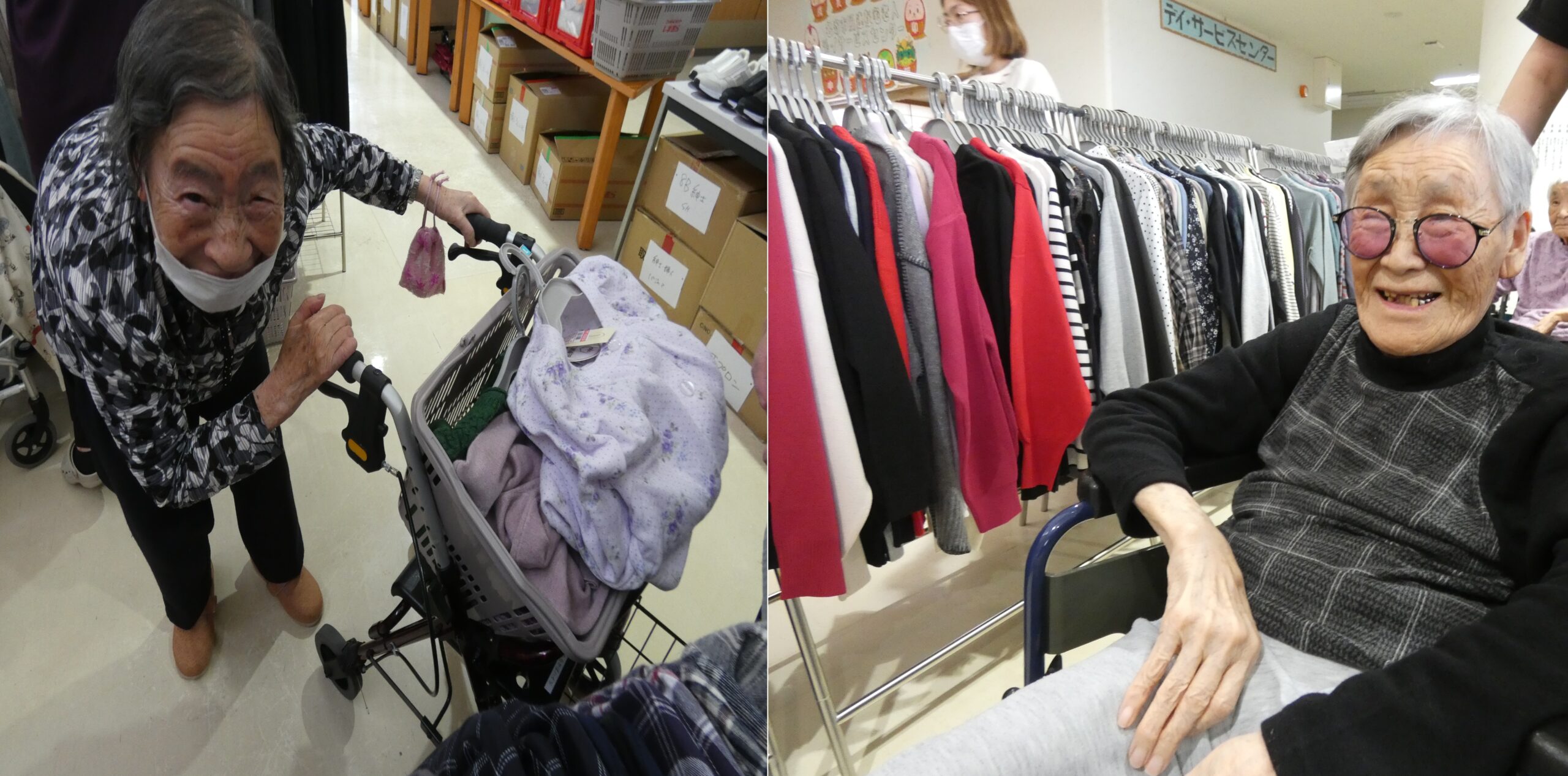 11月11日、本格的な冬の訪れに合わせ暖かな冬物衣料を中心に豊富な品揃えをご用意いただきました。当日は利用者さまご自身が色や素材を確かめながら直接服を手に取り、笑顔で楽しそうに選ばれる姿が多く見られました。また、ご家族の方々も来所され、一緒に冬の装いを相談しながら選ぶ、心温まる様子も見受けられました。