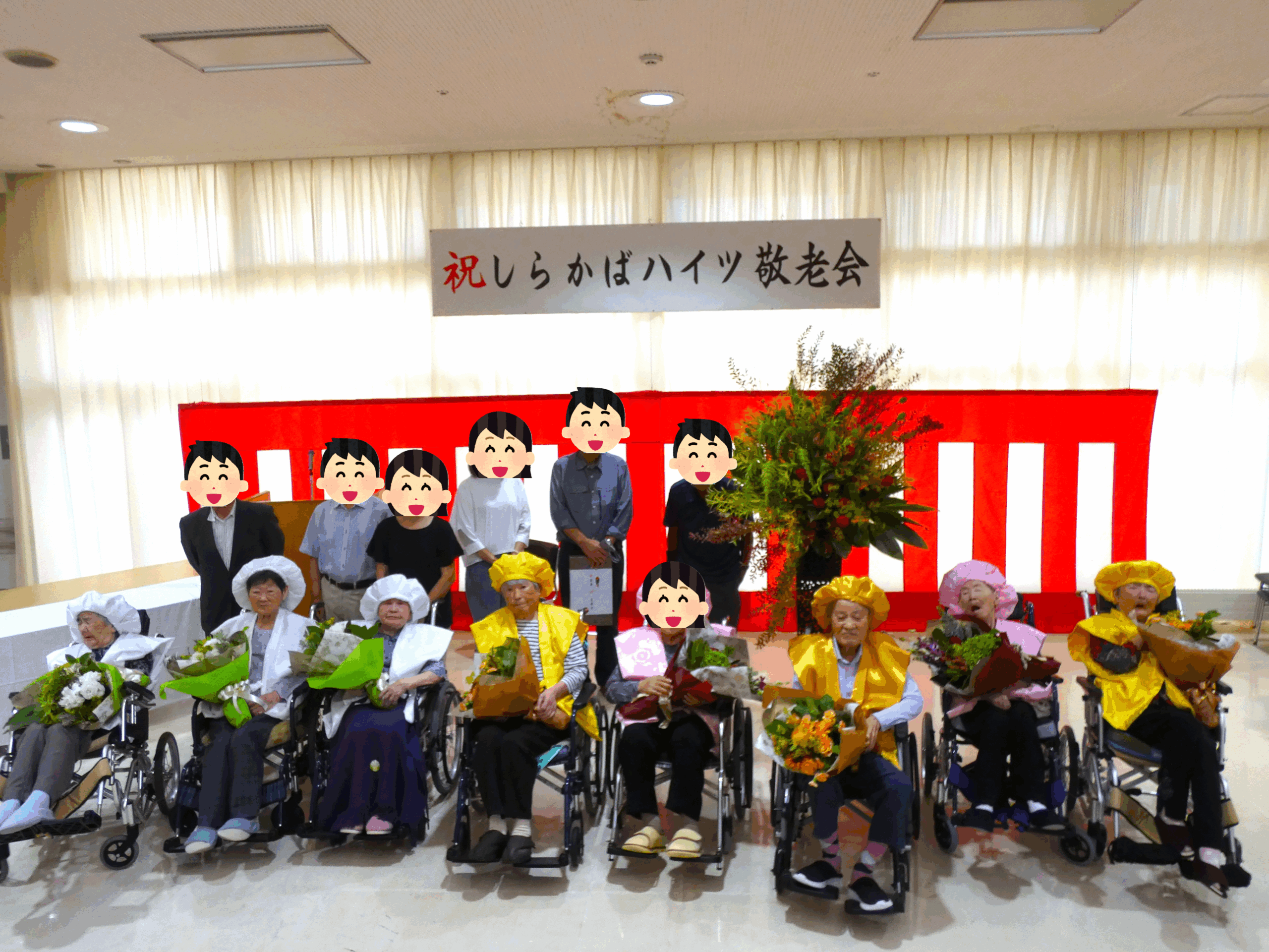 9月9日、しらかばハイツにて、日頃の感謝の気持ちを込めて 敬老会 を開催いたしました。ささやかではありますが、式典と美味しいお食事を皆さまに楽しんでいただきました。