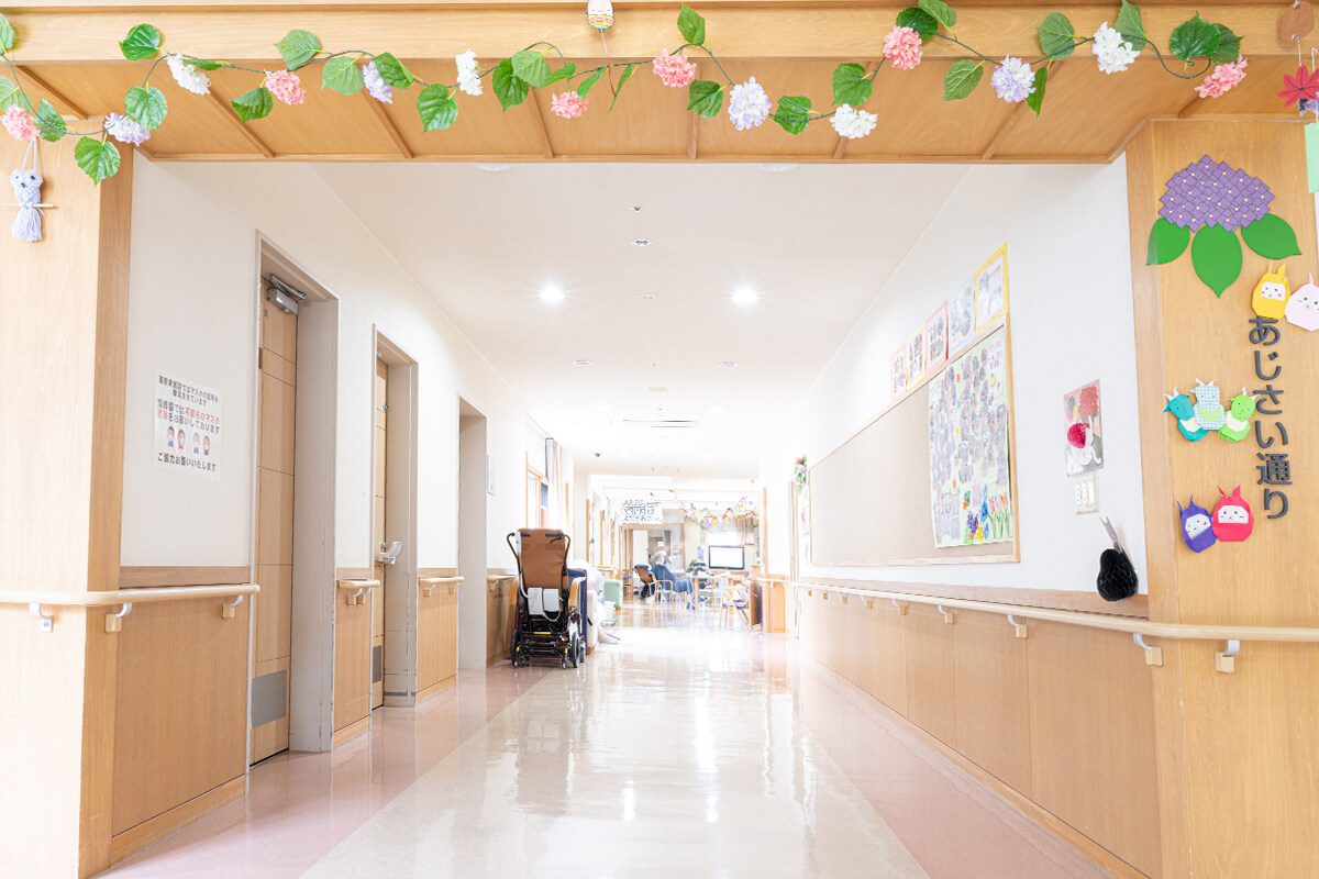 清峰園は従来型の特別養護老人ホームですが、一定人数ごとにエリアが分かれている建物となっており、利用者さまお一人お一人の個性をできるだけ尊重したケアを行っています。