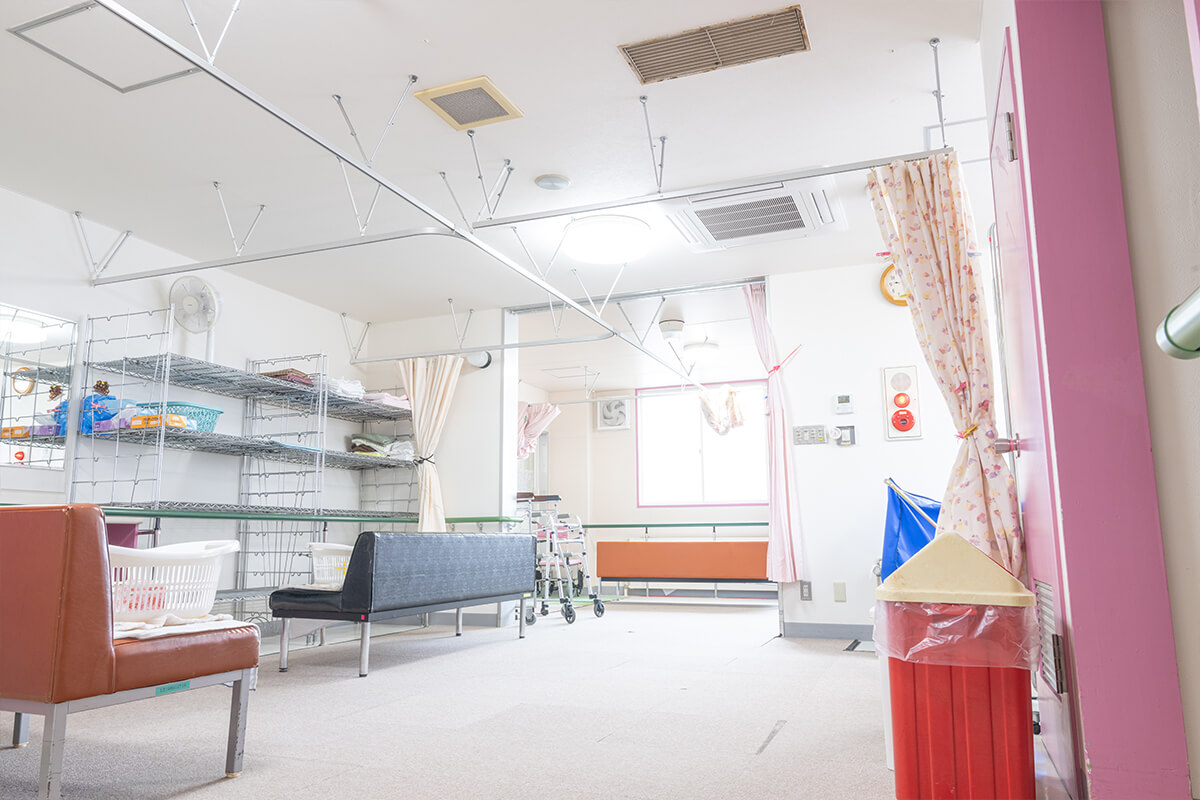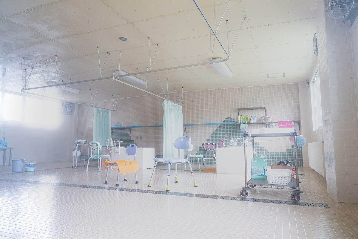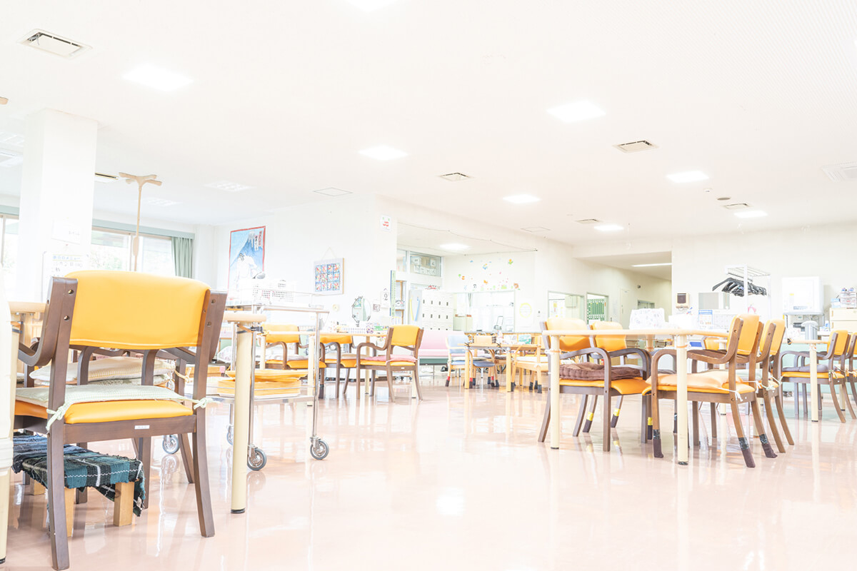 名寄市デイサービスセンター 楽々館では、陽差しが差し込む広いホールでゆったりとした時間をお過ごしいただけます。レクリエーションではカラオケなども行っており、みなさまが笑顔で楽しんでおります。もちろんキレイなお風呂も完備しております。