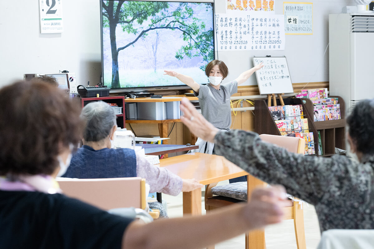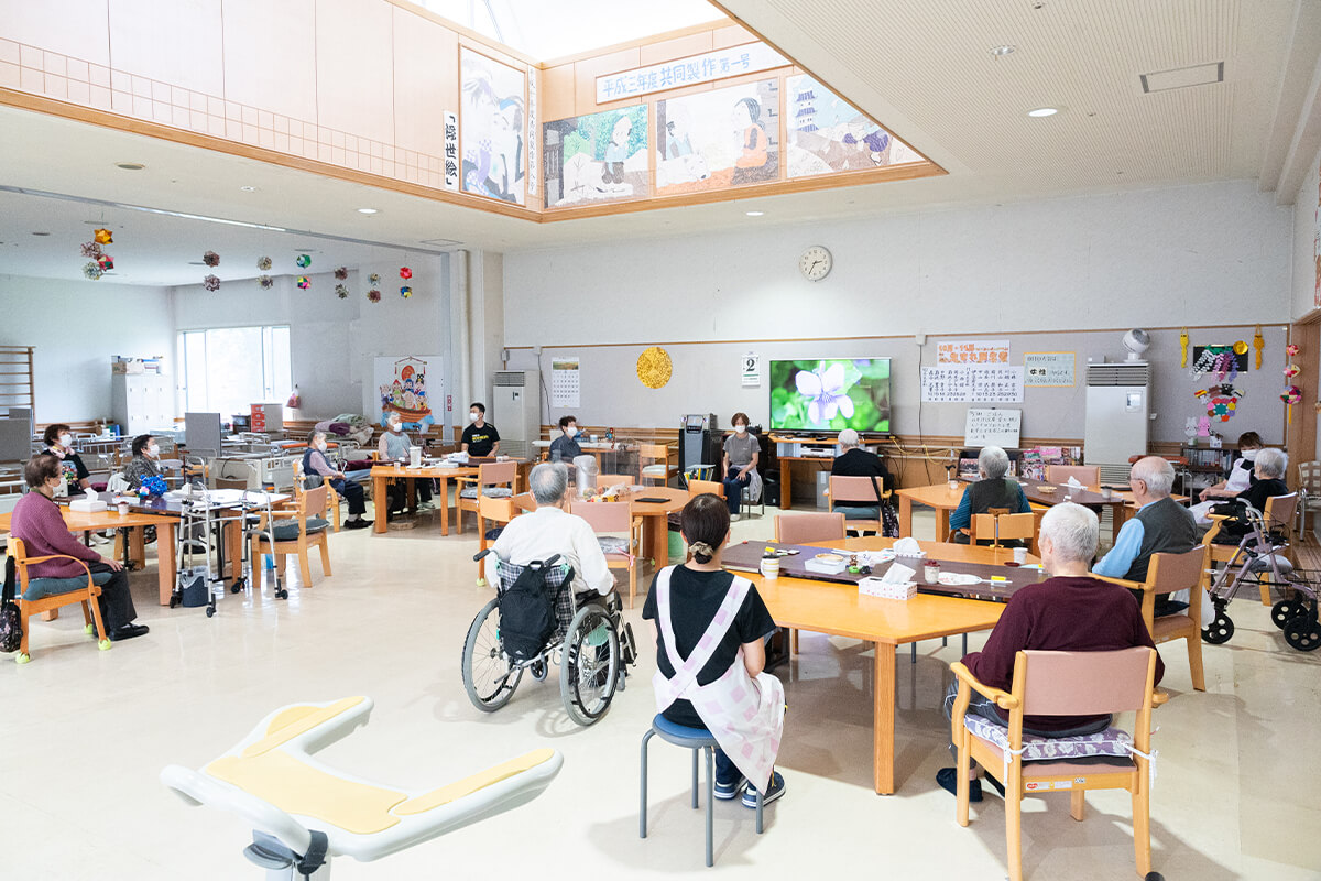 名寄市風連在宅老人デイサービスセンターでは、広いホールで食事やレクリエーションの他、専門のスタッフがサポートする運動療法などを取り入れており、それらを通したデイサービスでの温かな交流で、活力が生まれています。もちろんキレイなお風呂も完備しております。